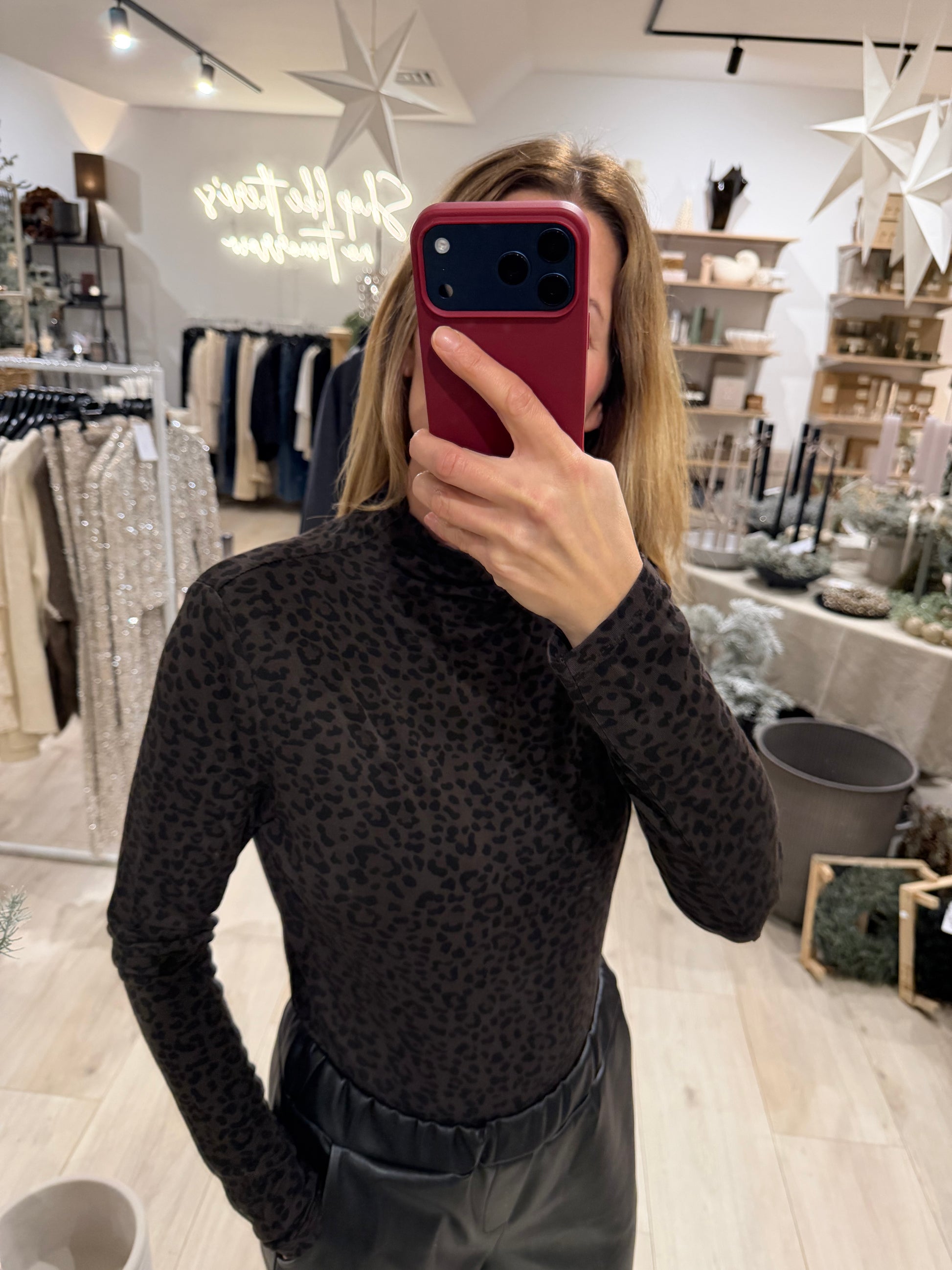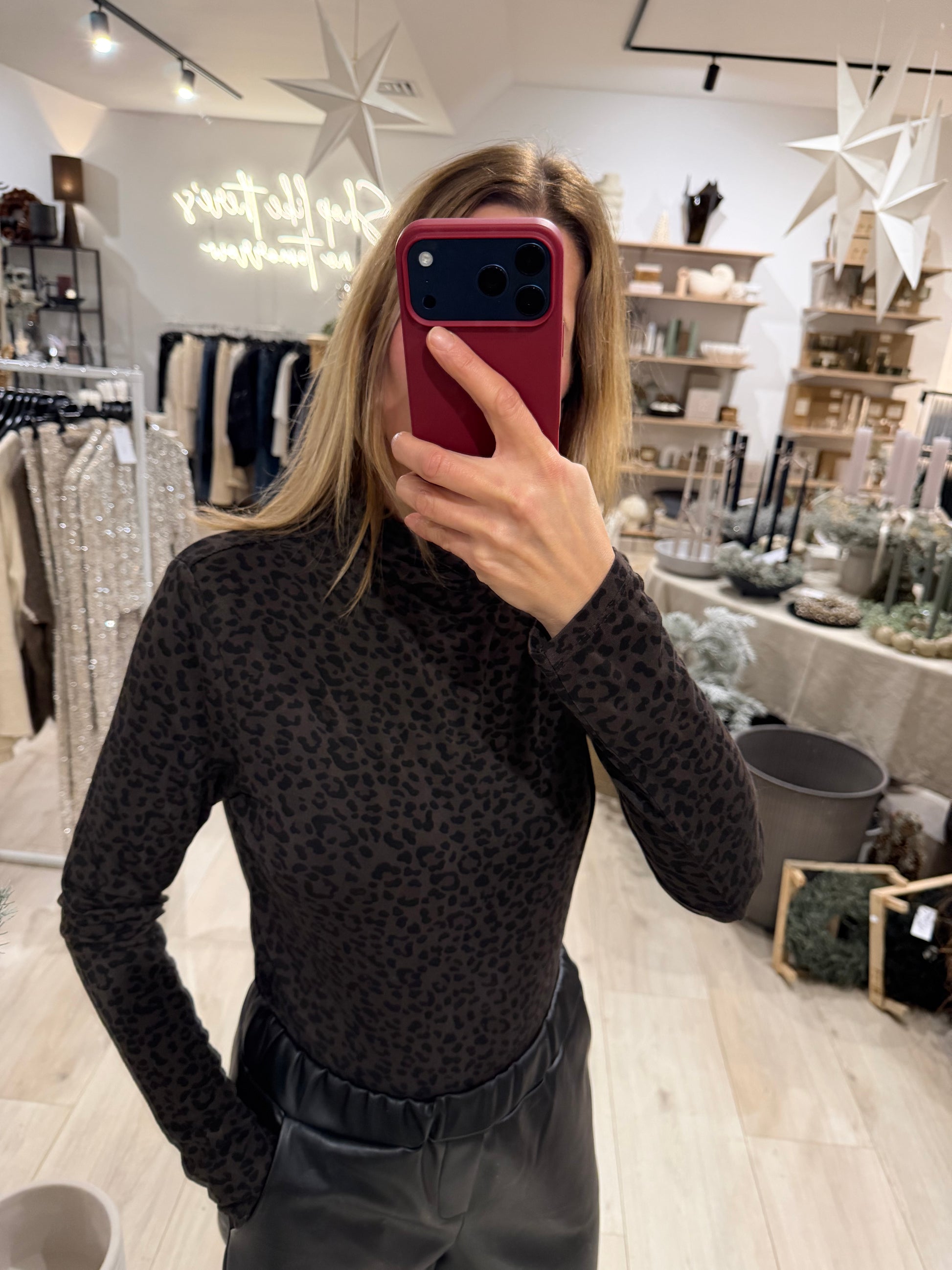Rollkragenpullover mit Leoprint