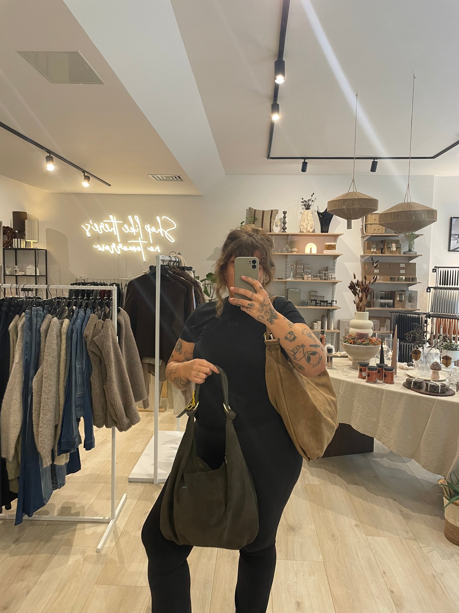 Schultertasche Wildleder dunkel